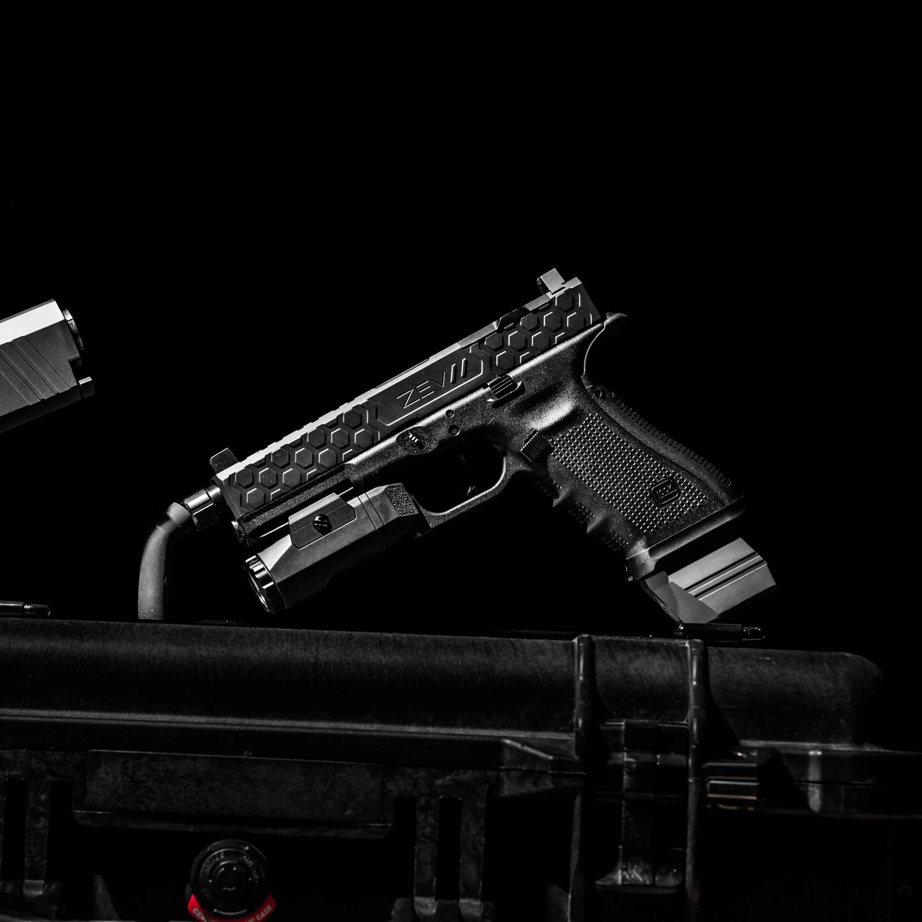 Our stands are made from high-quality American steel. Each pistol stand is finished with a durable black powder coat that protects it from chips and scratches.
